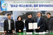 한국시사경제 전북취재본부 | 장수군은 26일 군청 회의실에서 B2B 식자재 전문 기업인 푸디스트 주식회사(사조그룹 계열)와 지역 경제 활성화와 농가 상생 발전을 위한 전략적 업무협약을 체결했다고 밝혔다. 이날 협약식에는 최훈식 장수군수를 비롯해 푸디스트 주요 실무·책임자가 참석해 군 농특산물·레드푸드 판로 확대와 지역 일자리, 축제 홍보, 사회공헌으로 이어지는 다양한 협력 의지를 공유했다. 장수군 대표 축제인 ‘장수한우랑사과랑축제’로 전국적으로 유명해진 장수 농특산물과 레드푸드에 대한 소비자들에 관심이 매우 높아졌다. 이에 푸디스트는 장수 농가와의 직거래를 확대해 농특산물 수급 불안정을 완화하고 합리적인 가격체계를 마련함으로써 지역 농업의 지속 가능성을 높이고자 협약을 추진하게 됐다. 이번 협약으로 장수군과 푸디스트는 한우, 사과, 토마토, 오미자 등 군의 대표 농특산물과 레드푸드에 대해 제품 기획, 상품 개발, 유통 등 전반에 걸친 전략적 협력 체계를 구축해 안정적인 판로를 개척한다. 더불어 장수 지역 농가와 직접 계약을 체결해 선제적으로 물량을 확보하고 기업과 농민이 함께 성장할 수