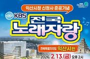 한국시사경제 전북취재본부 | KBS 전국노래자랑 무대가 익산을 찾아온다. 익산시는 오는 2월 13일 익산시실내체육관에서 전국노래자랑 '익산시 편'이 공개 녹화로 진행된다고 19일 밝혔다. 방송은 3월 말께 전국에 방영될 예정이다. 이번 무대는 시민의 염원이었던 익산시 신청사 개청을 다함께 축하하고, 힘찬 출발을 알리기 위해 마련됐다. 초대 가수로 박상철과 서주경, 양지은, 정서주, 김용빈이 출연해 축하 무대를 꾸민다. 본선 무대에는 예선을 통과한 15~17팀의 시민 참가자가 무대에 오르게된다. 참가 신청은 오는 23일부터 2월 5일까지 읍·면·동 행정복지센터 또는 시 행정지원과에서 선착순 300명까지 가능하다. 예심은 2월 11일, 솜리문화예술회관에서 열린다. 시 관계자는 "신청사 준공은 익산의 미래를 여는 상징적인 순간"이라며 "전국노래자랑을 통해 시민과 함께 신청사 개청을 축하하고, 익산의 밝은 에너지를 전국에 전하겠다"고 말했다.