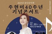 한국시사경제 충남취재본부 | 예산군문예회관은 2025년 송년을 맞아 오는 12월 20일 오후 7시 ‘트롯 여제’ 주현미의 데뷔 40주년을 기념하는 콘서트를 개최한다. 군은 대한민국 대표 트롯 가수인 주현미의 공연을 통해 다사다난했던 한 해를 마무리하고 군민들이 함께 소통하는 자리를 마련했다. 특히 이번 공연은 KBS관현악단 박상현 단장이 이끄는 ‘모스틀리 필하모닉 오케스트라’가 함께해 더욱 웅장하고 감동적인 무대를 선사할 예정이다. 남녀노소 온 가족이 함께 즐길 수 있는 이번 공연의 관람료는 1층 2만원, 2층 1만5000원이며, 예매는 12월 8일 오전 9시부터 인터넷, 전화, 현장 방문을 통해 할 수 있다. 공연과 관련한 자세한 사항은 군청 누리집 또는 전화(041-339-8211∼4)로 확인할 수 있다.