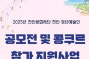 한국시사경제 충남취재본부 | 천안문화재단은 내달 3~ 5일까지 ‘천안 청년예술인 공모전 및 콩쿠르 참가 지원사업’ 참여자를 모집한다고 15일 밝혔다. 재단은 청년예술인의 문화예술 활동 영역을 확장하고 지원하기 위해 올해부터 공모전과 콩쿠르 참가 활동비 지원사업을 추진하게 됐다. 지원 대상은 천안시에 거주하거나 천안시 소재의 대학교 예술학과 재학 또는 졸업한 만 19세 이상 만 39세 이하의 청년예술인으로, 3년 이상 예술활동 실적이 있으면 신청할 수 있다. 신청은 재단 누리집에서 신청서를 내려받아 작성 후 증빙 서류와 함께 전자우편으로 제출하면 된다. 선정 결과는 심의를 거쳐 내달 19일 재단 누리집에 공지할 예정이다. 자세한 사항은 재단 누리집을 참고하거나 전화로 문의하면 된다.