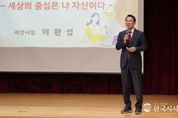 한국시사경제 충남취재본부 | 이완섭 서산시장이 20일 해미중학교 학생 180여 명을 대상으로 진로 특강을 진행했다. 이번 특강은 ‘세상의 중심은 나 자신이다’를 주제로 학생들에게 올바른 가치관 형성과 진로 선택에 도움이 될 조언을 전하고자 마련됐다. 이 시장은 “작은 눈덩이가 굴러가 큰 눈사람이 되듯, 작은 꿈이라도 품고 키워가는 과정이 무엇보다 중요하다”라며 “학생들에게 자기 자신을 믿고 가능성에 한계를 두지 말아야 한다”라고 말했다. 또한, 청소년이 빠지기 쉬운 ‘습관의 덫’에서 벗어나기 위해 일상 속 작은 변화를 만드는 행동의 실천이 필요하다고 강조했다. 이어, 긍정적인 사고와 적극적인 행동과 함께 어떤 어려움에서도 포기하지 않고 끝까지 도전하는 자세를 당부했다. 특히, 사회에서 중요하게 여겨질 자세로 ‘5S5품’을 소개했다. 5S는 친절(Smile), 간편(Simple), 유연(soft), 신속(Speed), 깔끔(Smart)을, 5품은 두품(창의), 입품(칭찬), 심품(감성), 손품(소통), 발품(현장)을 뜻한다. 특강이 마무리된 후에는 학생들과 자유롭