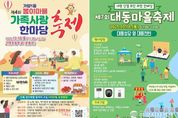 한국시사경제 대전취재본부 | 대전 동구는 오는 18일 구 대표 마을 축제인 ‘제4회 가양1동 봉이마을 가족사랑 한마당 축제’와 ‘제7회 대동 마을축제’를 잇따라 개최한다고 15일 밝혔다. 먼저, 가양1동 자생단체협의회(회장 오경진) 주관으로 얼리는 ‘제4회 봉이마을 가족사랑 한마당 축제’가 오전 11시부터 가양초 운동장에서 진행된다. 올해로 4회를 맞은 이번 축제는 주민 모두가 함께 즐기고 소통하는 지역 화합의 장으로 꾸며지며, 식전 풍물‧사물놀이 공연을 시작으로 ▲대전아트필하모닉오케스트라 금관 앙상블 ▲버블쇼 ▲댄스 및 색소폰 공연 ▲난타공연 등 다채로운 무대가 펼쳐진다. 또한, 주민이 직접 참여하는 가족 장기자랑과 제기차기·투호 결승전, 먹거리 장터, 도자기 공방, 아로마 체험 등 체험과 즐길거리가 어우러진 프로그램이 마련돼 온 가족이 함께 즐길 수 있다. 이어, 오후 1시부터는 대동성당 앞 대동천변에서 대동골목축제추진위원회(위원장 신영국) 주관으로 ‘제7회 대동 마을축제’가 열린다. ‘대동단결 주민 화합 한마당’을 주제로 진행되는 이번 축제는 개막식과 기념식을 시작으로 ▲대동 예라