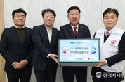 한국시사경제 권충언 기자 | 강릉시는 17일 수요일 오후 3시 30분 시청 8층 시민사랑방에서 적십자 특별회비 300만 원을 대한적십자사에 전달했다. 이날 행사는 김홍규 강릉시장, 김선배 대한적십자사 강원특별자치도지사 회장을 비롯한 대한적십자사 관계자, 지역 적십자봉사원이 참석한 가운데 진행됐다. 강릉시는 지역 내 나눔 문화를 확산하고 적십자회비 1차 집중모금 기간 적극적인 동참을 유도하기 위해 솔선수범하여 특별모금에 참여하였으며, 이 자리에서 대한적십자사는 2025년도 적십자 회비모금 운동에 적극 협조한 강릉시에 감사패를 전달했다. 한편, 대한적십자사는 오는 2026년 1월 31일 토요일까지 적십자회비 1차 집중모금 기간으로 정하고 도움의 손길이 필요한 이웃을 위해 모금에 참여해 줄 것을 독려하고 있다.
