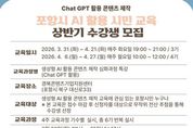 한국시사경제 노승선 기자 | 포항시는 디지털 전환 시대에 대응해 시민의 정보 활용 역량을 높이기 위해 시민정보화교육과 생성형 AI 활용 특강을 연계 운영하며 시민 대상 교육을 본격 추진하고 있다. 시민정보화교육은 종합운동장 2층에서 3월부터 11월까지 운영되며, 회차당 75명 정원으로 진행된다. 높은 참여율을 보이며 시민들의 관심 속에 1회차 교육이 운영 중이다. 이번 1회차 교육은 컴퓨터 및 인터넷 기초, 엑셀 2021, 스마트폰 활용 등 실생활 중심 과정으로 구성돼 시민들의 디지털 기초 역량 향상에 초점을 맞추고 있다. 2회차 교육은 오는 24일부터 26일까지 접수를 진행한 뒤 3월 30일부터 4월 17일까지 운영될 예정이며 컴퓨터활용능력(2급 실기), ITQ 엑셀, 한글 2022 과정이 개설된다. 교육 신청은 방문·전화 또는 포항시 홈페이지를 통해 가능하며, 교육생은 전산 추첨 방식으로 선발된다. 포항시는 정보화교육과 연계해 생성형 AI 활용 콘텐츠 제작 특강도 함께 운영하고 있다. 특강은 경북콘텐츠기업지원센터에서 진행되며, ChatGPT를 활용한 글쓰기와 콘텐츠 제작 실습 중심으