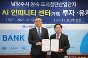 한국시사경제 경기북부취재본부 | 남양주시는 5일 서울 중구 신한은행 본점에서 신한금융그룹과 왕숙 도시첨단산업단지 내 ‘AI 인피니티 센터’ 투자유치를 위한 업무협약을 체결했다. 이번 협약은 신한금융그룹의 금융 AI 선도기술 확보를 위한 핵심 사업으로, 시는 약 8,500억 원 규모의 민간 투자를 통해 왕숙 도시첨단산업단지의 경쟁력을 강화하고 첨단 금융·AI 산업 기반을 조성하는 데 속도를 낼 계획이다. 신한금융그룹 ‘AI 인피니티 센터’는 왕숙 도시첨단산업단지 내 약 9만 7,000㎡ 부지에 조성되며, △AI 데이터센터 △업무시설 △R&D 연구시설 등으로 구성된다. 센터가 완공되면 신한금융그룹 임직원과 협력사 직원 등 500여 명이 상주하게 돼, 실제 금융권의 AI 기술 개발·운영이 이뤄지는 핵심 업무 거점으로 자리매김할 것으로 기대된다. 이날 협약식에 참석한 주광덕 시장은 “오늘 협약을 통해 남양주시는 다산 정약용의 혁신철학을 미래지향적으로 실현하고, 신한금융그룹은 AI 금융산업의 선도기업으로 거듭날 수 있는 계기가 됐다”며 “남양주를 선택한 신한금융그룹에 놀랄만한 특별한 혜택과 적극적 행정지원을