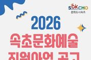 한국시사경제 권충언 기자 | 속초문화관광재단이 지역 문화활동 활성화와 문화예술 진흥을 위해 지역 내에서 지속적인 문화예술활동이 가능하도록 지원하는 ‘2026 속초문화예술지원사업’을 추진한다. 2026 속초문화예술지원사업은 문화예술단체, 문화예술인, 생활예술, 찾아가는 문화활동 등 총 4개 분야로 구성된다. 문화예술단체와 문화예술인 분야는 전문 문화예술인과 단체를 지원하며, 생활예술 분야에서는 시민의 문화예술 활동을 돕는다. 문화예술 향유 기회가 상대적으로 적은 기관을 직접 방문하는 ‘찾아가는 문화활동’ 분야도 모집한다. 재단은 지난해에 이어 올해도 지원사업 참여 기회를 확대하기 위해 예비순위 제도를 운영한다. 심사에서 최대 예비 3순위까지 선정해 사업 포기 등으로 지원이 어려웠던 경우 후순위 단체(인)에게 지원할 수 있도록 한다는 취지다. 2026년도 공모 자격요건은 지난해와 동일하게 적용된다. 찾아가는 문화활동을 제외한 3개 사업은 공고일 기준 속초시에 소재한 문화예술단체 또는 생활예술단체가 신청할 수 있다. 문화예술인은 공고일 기준 1년 이상 속