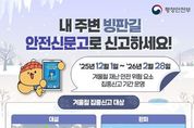 한국시사경제 문화팀 | 내 주변 빙판길 안전신문고로 신고하세요! '25년 12월 1일 ~ '26년 2월 28일 겨울철 재난 안전 위험 요소 집중신고 기간 운영 ■ 겨울철 집중신고 대상 (대설) 제설 미흡, 제설함 관리 불량, 시설물 파손·붕괴 위험 등 (한파) 인도 결빙, 동파 우려, 고드름 낙하, 한파 쉼터 불편 등 (화재) 비상구 물건 적치, 담배꽁초 투기, 소화시설 불량, 불법 취사·소각 등 (축제·행사) 인파 밀집 우려, 행사장 시설 파손, 안전관리 미흡 등