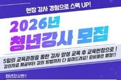 한국시사경제 충남취재본부 | (재)천안시청소년재단 천안시태조산청소년수련관이 2월 7일까지 ‘2026년 청년강사 양성 사업’ 참여자를 모집한다. 올해로 5년째를 맞이한 이번 사업은 청년들에게 교육 현장에서 직접 강의할 기회를 제공함으로써 실무 역량 강화와 진로 탐색을 돕기 위해 기획됐다. 모집 대상은 20~30세까지의 대학 재학생 및 졸업생이다. 참가는 홍보 포스터 내 정보무늬(QR코드)를 통해 신청 가능하다. 선발된 인원은 2월 중 양성 교육을 거쳐 청년강사로 정식 활동하게 된다. 청년강사에게는 강사비 지급, 활동 확인서 발급, 우수 활동자 표창, 강의 교안 제공 등 다양한 혜택이 주어진다. 자세한 사항은 천안시태조산청소년수련관 누리집을 확인하거나 전화로 문의하면 된다. 김응일 (재)천안시청소년재단 대표이사 직무대행은 “청년강사 양성 사업을 통해 청년들이 교육 현장에서 실질적인 경험을 쌓고, 지역사회와 함께 성장하는 계기가 되길 바란다”고 말했다.