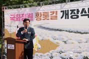 한국시사경제 노승선 기자 | 박강수 마포구청장은 10월 20일 14시, 국화정원(현석동225-2)에서 열린 ‘국화정원 황톳길 개장식’에 참석해 황톳길을 걸으며 주민들과 함께 가을의 정취를 만끽했다. 이날 개장식에는 약 50여 명의 주민과 관계자가 참석했으며, 공원녹지과장의 경과보고를 시작으로 테이프 커팅식과 기념촬영, 황톳길 시찰 순으로 진행됐다. 이번에 조성된 황톳길은 총 길이 80미터에 달하는 혈액 순환 개선과 피로 회복에 도움을 주는 맨발 산책로로, 주민들이 일상 속에서 걷기 운동과 자연 치유를 동시에 할 수 있도록 조성됐다. 또한 국화정원 황톳길은 다가오는 가을에 맞게 황톳길 주변으로 구절초 등 국화류 8,400본을 식재해 가을의 향기와 색감을 더했다. 주민들은 흙길의 촉감과 가을꽃의 향연 속에서 한층 여유로운 시간을 즐겼다. 박강수 마포구청장은 “오늘 국화정원 황톳길 개장식에 함께 해주신 주민 여러분께 진심으로 감사드린다”라며, “한때 관리가 미흡해 찾는 이가 드물었던 공원이었지만, 이번 정비를 통해 사계절 내내 주민이 찾아와 쉬고 걷는 생기 넘치는 공간으로 다시 태어나길 바란