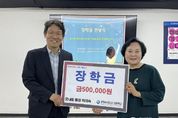 한국시사경제 사회팀 | 라의숙 군포시 궁내동통장협의회장은 10월 1일 군포e비즈니스고등학교에 장학금을 전달하며 지역 청소년들의 꿈을 응원하는 뜻깊은 나눔을 실천했다. 이번 장학금은 라의숙 통장이 ‘궁내동 마을의제 발굴 경진대회’에서 금상을 수상하며 받은 상금 50만원 전액을 기부한 것으로 지역사회 발전을 위한 아이디어가 다시 지역 인재를 위한 지원으로 이어졌다는 점에서 더욱 의미가 깊다. 장학금은 군포e비즈니스고등학교 내 우수한 학생들에게 수여될 예정이다. 라의숙 통장은 평소 지역사회를 위한 다양한 활동에 앞장서며 교육·복지·공익 분야에서 꾸준한 기여를 이어오고 있다. 이번 장학금 기부 역시 지역 청소년들의 학업과 미래를 응원하는 실천적 나눔의 일환으로 그녀의 지역사랑이 고스란히 담겨 있다. 라의숙 회장은 “마을을 위한 고민이 다시 학생들을 위한 희망으로 이어져 기쁘다”며 “앞으로도 지역 청소년들을 위해 학생들의 학업 성취를 응원하는 지속적인 나눔활동과 관심을 이어가겠다”고 전했다.
