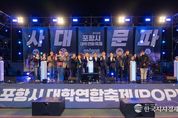 한국시사경제 노승선 기자 | ‘2025 포항시 대학연합축제(POP)’가 지난 15일 포항종합운동장 일원에서 5천여 명의 지역 대학생과 시민이 참여한 가운데 성황리에 막을 내렸다. 이번 축제는 5년 만에 다시 열린 대학연합행사로, 포항 지역 4개 대학(선린대, 포스텍, 포항대, 한동대) 학생들이 한자리에 모여 경쟁과 화합을 통해 지역과 대학이 상생 발전하는 새로운 비전을 제시했다. 행사는 오전 사전프로그램으로 진행된 대학 간 축구대항전 3·4위전과 결승전으로 시작됐다. 각 대학의 치열한 승부와 더불어 열정적인 응원전이 더해지며 청년들의 뜨거운 경쟁이 펼쳐졌고, 우승은 한동대학교가 차지했다. 이후 본 무대에서는 각 대학 동아리 11개 팀이 참여한 동아리 대전이 열려 대학생들의 재능과 열정을 한껏 느낄 수 있는 시간이 이어졌다. 또한 개막식은 포항YMCA소년소녀합창단의 공연으로 막을 올렸으며, 이어진 축구대항전 시상식과 각 대학의 로고와 ‘사대문파’ 슬로건, 마지막으로 포항시의 상징이 더해진 퍼포먼스로 지역과 대학, 청년이 함께 성장하는 의미를 전했다. 이어진 축하공연에는 인기 아티스트 터