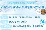 한국시사경제 사회팀 | 수원시 팔달구는 10월 18일 오후 12시부터 17시 30분까지 팔달구청 정문 앞마당에서 ‘2025년 팔달구 반려동물 문화교실’을 개최한다고 밝혔다. 반려동물 문화교실은 성숙한 반려문화 확산과 올바른 반려동물 관리, 양육 방법을 알리기 위해 마련됐으며 반려동물 등록자 및 팔달구민 120명을 대상으로 추진한다. 교육 프로그램은 △인식표 만들기 △산책 그룹 훈련 △반려견 셀프 미용으로 총 3개 프로그램을 추진한다. 12시부터 진행하는 ‘인식표 만들기’는 반려견 유실 방지를 위해 동물등록번호와 견주 연락처를 새긴 맞춤형 인식표를 직접 제작할 수 있고, 14시부터는 ‘산책 그룹 훈련’에서는 산책줄 핸들링과 돌발 상황 시 대처법 등 및 올바른 산책 방법에 대해 배워볼 수 있다. 15시 30분에는 초보자도 쉽게 실천할 수 있는 ‘반려견 셀프 미용 수업’이 준비되어 있다. 팔달구 관계자는 “2025년 반려동물 문화교실 개최를 통해 구민들이 반려동물을 책임감 있게 관리하고, 올바른 반려 문화가 조성되길 바란다“라고 말했다. 한편, 팔달구는 구 홈페이지, 안내문자 및 QR코드를