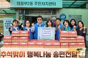 한국시사경제 경기북부취재본부 | 의정부시 의정부2동주민센터는 9월 30일 관내 저소득 취약가구 45세대를 대상으로 ‘추석맞이 행복나눔 송편전달’ 행사를 진행했다. 이번 행사는 민족 최대의 명절인 추석을 맞아 어려운 이웃들과 따뜻한 정을 나누고, 명절 소외감을 해소하기 위해 마련됐다. 의정부2동 지역사회보장협의체 위원들이 직접 가정을 방문해 송편을 전달하며 안부를 확인하고, 각 가구에 필요한 복지서비스가 적절히 연계‧지원되고 있는지 점검하는 시간도 가졌다. 지명준 위원장은 “이웃을 생각하는 마음으로 준비한 송편을 드시며 따뜻한 정을 느끼고, 건강하고 행복한 명절을 보내시길 바란다”고 전했다. 조미경 동장은 “이번 송편 나눔이 취약가구 이웃들이 따뜻한 명절을 보내는 계기가 되길 바란다”며 “앞으로도 주민들의 복지 수요를 꼼꼼히 살피며 필요한 서비스를 적시에 제공할 수 있도록 최선을 다하겠다”고 말했다.