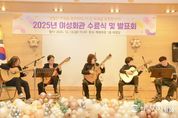 한국시사경제 이정이 기자 | 횡성군은 12일 여성회관 대강당에서 강사와 수강생 등 250여 명이 참석한 가운데 2025년 여성회관 교육 수료식 및 발표회를 성황리에 개최했다. 올해 여성회관 교육프로그램은 4개 분야 31개 과목을 상하반기 각 4개월씩 운영하여 568명이 수료했으며, 수료식은 그간 수료생들의 성실한 참여와 노력을 격려하는 자리로 마련됐다. 2부 발표회에서는 기타교실을 포함한 총 6개 강좌가 다채로운 공연을 선보였으며 관람객들은 수강생들의 열정과 성과를 함께 나누며 큰 호응을 보냈다. 또한, 캘리그라피, 서양화, 섬유채색, 핸드페인팅, 어반스케치 등 5개 강좌의 작품 전시회가 함께 열려 수강생들이 그동안 갈고닦은 솜씨를 선보이는 기회가 됐다. 특히 자격증 취득 과정에서는 올 상반기에만 GTQ포토샵 1급 등 4개 과목에서 총 26개의 자격증을 취득했으며, 연말 자격시험 결과까지 더할 경우 수료생들의 자격 취득 실적은 더욱 늘어날 전망이다. 김홍석 군 가족복지과장은 “여성회관 교육 프로그램을 통해 군민들이 새로운 지식과 기술을 배우며 자기계발과 역량을 높이고, 건전한 여가와 문화를 향유할