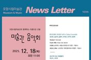 한국시사경제 노승선 기자 | 포항시립미술관은 오는 18일 오전 11시, 제103회 미술관 음악회 ‘MUSEUM · MUSIC’를 개최한다. 이번 음악회는 2025년 마지막 음악회로, 크리스마스와 연말 분위기에 어울리는 다채로운 음악 프로그램을 마련해 시민들에게 따뜻한 문화 향유의 시간을 선사할 예정이다. 미술관 음악회는 2014년부터 ‘문화가 있는 날’과 연계해 정기적으로 운영되고 있는 포항시립미술관의 대표 문화 프로그램이다. 전시 감상과 공연을 결합한 복합 문화 향유 모델로 자리 잡았으며, 매월 다양한 장르의 음악을 선보여 시민들이 일상 속에서 예술을 가까이 접할 수 있도록 하고 지역 문화예술 활성화에도 꾸준히 기여해 왔다. 이번 제103회 음악회는 지역 기반 생활예술단체와 시민 예술인이 함께하는 공연으로 기획됐다. 클래식 기타 앙상블 ‘폴인클래타(Fall in Clatta)’를 중심으로 혼성 포크기타 듀오 ‘로얄젤리’, 하모니카와 팬플룻 협연, 싱어송라이터 공연까지 어우러진 다(多)장르 구성으로 세대와 취향을 아우르는 무대를 선보인다. 공연의 문을 여는 폴인클래타 앙상