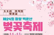 한국시사경제 김숙영 기자 | 함양군은 ‘제24회 함양 백운산 벚꽃축제’가 오는 4월 4일부터 5일까지 이틀간 백전면 다목적광장 일원에서 개최된다고 밝혔다. 백전면 문화체육회(회장 황원하)가 주최·주관하는 이번 축제는 아름다운 50리 벚꽃길을 배경으로 각종 체험행사, 먹거리와 함께 벚꽃 전국트롯가요제 등 다양한 프로그램을 마련해 상춘객을 맞이할 예정이다. 백전면 50리 벚꽃길은 수동면에서 백전면으로 이어지는 구간으로, 30여 년 전 함양 출신의 고(故) 박병헌 재일거류민단장이 기증한 벚나무가 지금까지 보전 관리되어 함양군 봄 명소로 자리 잡고 있다. 축제 첫날인 4일에는 벚꽃축제 성공기원제를 시작으로 오전 11시 개막식과 축하공연, 주민자치프로그램 공연, 면민 노래자랑 등 각종 프로그램이 진행된다. 축제 둘째 날인 5일에는 마을 대항 민속놀이, 제3회 백운산 벚꽃 전국트롯가요제, 지역 가수 공연 등이 진행될 예정이며, 축제 기간 벚꽃길 야간조명 등 다양한 볼거리를 통해 방문객 체류 시간을 늘릴 계획이다. 특히, 올해로 3회째를 맞는 ‘함양 백운산 벚꽃 전국트롯가요제’가 축제 기간 개최되며