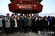 한국시사경제 전북취재본부 | 남원시는 1일 기원제(덕음산 팔각정)와 사랑의 광장에서 2026년 병오년(丙午年) 새해 해맞이 떡국나눔 행사를 개최했다. 이번 행사는 남원애향본부와 남원로타리클럽 주최‧주관하고 남원시와 춘향로타리클럽이 후원한 가운데 열렸으며, 시민과 공무원, 관광객 등 2,000여 명이 참여해 새해 첫 일출을 맞으며 한 해의 안녕과 도약을 기원했다. 행사는 새벽 산행 후 해맞이를 시작으로 △축문낭독 △기원제(분향) △새해 덕담 △제2중앙경찰학교 유치 염원 퍼포먼스 순으로 진행됐으며, 참석자들은 떠오르는 해를 바라보며 각자의 소망을 되새기는 시간을 가졌다. 특히 이날 행사에서는 제2중앙경찰학교 남원 유치 염원 퍼포먼스가 함께 펼쳐져 눈길을 끌었다. 참가자들은 관련 문구가 적힌 손피켓과 구호를 통해 남원 유치에 대한 시민들의 한뜻을 모으며 지역균형발전 유치 필요성 공감대 형성 및 남원시민의 강한 의지를 대내외에 알렸다. 이후 참가자들은 사랑의 광장으로 이동해 남원시립농악단의 공연과 함께 떡국 및 막걸리 나눔 행사가 이어져 새해의 따뜻한 정을 나누는 화합의 장이 펼쳐졌다. &nb