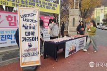 한국시사경제 정치팀 | 영월군청소년수련관(관장 이두영)은 2026학년도 대학수학능력시험을 맞아 지난 11월 13일(목) 수험생 약 272명을 대상으로 영월고등학교와 석정여자고등학교 앞에서 활력 가득한 수능 응원 캠페인을 진행했다. 이번 수능 응원 캠페인은 수련관 소속의 청소년운영위원회, 청소년참여위원회, 청소년동아리연합회 청소년들과 함께 진행 됐으며 핫팩, 수능 부적, 컴퓨터용 사인펜, 간식류 등 수험생 맞춤형 선물을 전달하며 “힘찬 하루, 든든한 마음으로 힘내세요!”라는 따뜻한 응원 메시지를 전달하며 진행됐다. 영월군청소년수련관(이두영 관장)은 “수험생들의 노력이 좋은 결실로 이어지기를 진심으로 바란다”며 “앞으로도 청소년과 지역사회를 응원하는 따뜻한 활동을 계속 추진하겠다.” 고 말했다. 이어 “여러분의 내일이 언제나 빛나길 바라며 마음을 다해 응원하겠다”고 덧붙였다.