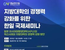 한국시사경제 해외팀 | 경남연구원(원장 오동호)은 20일 경남연구원 1층 가야대회의실에서 ‘일본 아시아태평양대학(APU)의 혁신사례와 지방대학의 경쟁력 강화 방안’을 주제로 ‘지방대학의 경쟁력 강화를 위한 한‧일 국제세미나’를 개최했다. 이번 세미나는 학령인구 감소와 청년층 수도권 집중 등으로 신입생 충원난을 겪는 지방대학의 현실을 공유하고, 일본의 성공적 혁신사례를 통해 새로운 발전 가능성을 모색하기 위해 마련됐다. 첫 번째 발표에서 가세다 요시노리 아시아태평양대학(APU) 교수는 ‘아시아태평양대학(APU)의 성공적인 혁신사례’를 주제로 국제화 전략을 소개했다. 아시아태평양대학(APU)는 개교 이후 다문화·글로벌 환경 조성, 외국인 유학생 비율 48%, 외국국적 교원 46% 확보 등 파격적인 전략을 추진해 왔다. 또한 다문화 교육, 전원 해외 교육경험, 100개가 넘는 국제봉사와 지역교류 활동 등 차별화된 프로그램 운영 등을 설명하며, “이러한 노력이 아시아태평양대학(APU)를 일본 지방대학 혁신의 대표적 성공 모델로 만들었다”고 말했다. 이어 아오키 에이지 하이퍼네트워크사회연구소 소장이 ‘지방대