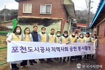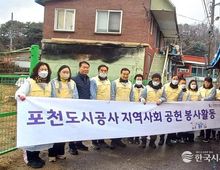 한국시사경제 경기북부취재본부 | 포천도시공사는 지난 27일 난방 지원이 필요한 영북면의 취약가구를 방문해 ‘사랑의 연탄나눔’ 봉사활동을 실시했다. 공사 임직원들은 에너지 취약계층 3가구에 총 1,500장의 연탄을 직접 전달하며 겨울철 난방 부담을 덜어주는 데 힘을 보탰다. 이번 봉사활동은 포천도시공사가 포천시사회복지협의회와 함께하는 ‘좋은이웃들’ 사업의 일환으로, 두 기관이 사전에 난방 취약가구를 발굴해 지원 대상과 현장을 확인한 뒤 진행됐다. 이상록 사장은 “이번 연탄나눔이 어려운 이웃들의 겨울 준비에 조금이나마 도움이 되길 바란다”며 “앞으로도 지역사회와 함께하는 공기업의 책임을 다하고 지속적인 나눔 활동을 이어가겠다”고 말했다. 김송학 영북면장은 “지역의 어려운 가정에 따뜻한 손길을 전해주신 포천도시공사 임직원 여러분께 깊이 감사드린다”며 “이러한 나눔 활동이 지역 공동체에 큰 힘이 되고 있으며, 앞으로도 공공기관과 지역사회가 함께하는 복지 실현을 위해 노력하겠다”고 전했다. 포천도시공사는 이번 연탄나눔 활동을 계기로 지역사회와의 소통과 협력을 더욱 강화할 계획이다. 공기업으로서 시민의 일상과