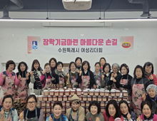 한국시사경제 사회팀 | 수원시여성리더회가 5일 행궁동 어울림센터 공용주방에서 ‘장학기금 마련 젓갈 포장 행사’를 열었다. 김미애 수원시여성리더회 총회장과 이지영 수원시여성단체협의회 명예회장 등 회원 20여 명이 참여해 명란젓과 낙지젓 등 4종의 젓갈을 소포장해 판매했다. 수익금은 장학금으로 기부할 예정이다. 김미애 총회장은 “장학기금 마련에 동참해 주신 모든 분께 감사드린다”며 “이번 행사가 학생들의 미래를 응원하는, 작은 힘이 되길 바란다”고 말했다. ‘수원시 여성지도자대학’ 수료생으로 구성된 수원시여성리더회는 2004년 출범 이후 한부모가정 지원, 저소득 중·고등학생 장학금 후원, 복지관 중식 봉사, 소외계층 김장 봉사, 헌혈 캠페인 등 지역사회를 위한 나눔·봉사 활동을 꾸준히 하고 있다.