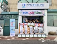 한국시사경제 사회팀 | 수원시 권선구 곡선동에 위치한 시립하늘채더퍼스트2어린이집은 지난 9일, 관내 저소득 가구를 위해 떡국용 식료품 꾸러미 60세트를 기부했다. 이날 전달된 꾸러미는 떡국 떡, 사골 육수, 김 등 명절 상차림에 필요한 식품들로 알차게 구성됐다. 이번 나눔은 설 명절을 앞두고 어려운 이웃들이 따뜻한 떡국 한 끼를 드시길 바라는 마음으로, 김혜영 원장을 비롯한 교직원들이 뜻을 모아 마련했다. 김혜영 원장은 “어려운 이웃들이 명절을 따뜻하게 보내시길 바라는 마음으로 준비했다”며 “앞으로도 아이들에게 나눔의 가치를 자연스럽게 전할 수 있도록 지속적인 나눔 활동을 이어가겠다”라고 전했다. 김미현 곡선동장은 “따뜻한 설 명절을 보낼 수 있게 도움을 주신 시립하늘채더퍼스트2 어린이집에 감사드린다”며, “지역 내 도움이 필요한 이웃들에게 잘 전달하겠다”라고 말했다.
