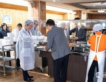 한국시사경제 충북취재본부 | 김창규 제천시장은 13일 설 명절을 앞두고 시민과 지역발전을 위해 힘쓰고 있는 직원들을 격려하고자 시청 구내식당에서 떡만둣국 배식 봉사를 했다. 이날 김창규 제천시장은 최승환 부시장과 함께 직접 앞치마를 두르고 배식대에 서서 점심 메뉴인 떡만둣국을 직원 250여 명에게 직접 나눠주었다. 김 시장은 배식과 함께 직원 한 명 한 명에게 새해 덕담을 건네며 감사의 마음을 전했다. 이 행사는 시정 발전을 위해 묵묵히 소임을 다해온 직원들의 노고를 위로하고, 명절의 따뜻한 정을 함께 나누기 위해 마련됐다. 한 직원은 “시장님께서 직접 국을 담아주시며 고생 많다고 격려해 주시니 마음까지 든든해지는 기분”이라며 “따뜻한 한 끼 덕분에 즐겁게 명절을 맞이할 수 있을 것 같다”라고 말했다. 김창규 시장은 “보이지 않는 곳에서 제천시를 위해 발로 뛰는 우리 직원들이야말로 시정의 원동력”이라며 “비록 소박한 한 그릇이지만 직원들에게 따뜻한 응원의 메시지가 전달됐기를 바란다”라고 밝혔다. 아울러, 김 시장은 “민족 대명절인 설을 맞아 시민 여러분들도 따뜻하고 행복한 연휴 보내시고 새해 복 많