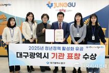 한국시사경제 대구취재본부 | 대구 중구는 ‘2025년 청년정책 활성화 유공’ 분야에서 대구광역시 기관 표창을 받았다고 밝혔다. 대구시는 청년정책 전담 부서를 신설한 2017년 이후, 우수한 청년정책 추진 성과를 거둔 기초자치단체를 대상으로 표창을 수여한다. 대구 중구는 청년 주거 안정과 경제적 부담 경감을 위해 청년 사업자 임대료 지원, 청년 부동산 중개보수 및 이사비 지원 등 지역 정착형 사업을 대구 지역 지자체 최초로 추진해 왔다. 또한 행정안전부 주관 ‘2025년 청년마을 만들기’ 공모사업에 선정돼 청년친화도시 기반을 마련했으며, 청년 소통과 교류의 거점인 중구 청년지원센터 ‘잇플’을 개소해 청년 활동 공간을 확충했다. 이와 함께 ‘중구 청년의 날’ 행사와 청년 팝업 클래스 등 청년 맞춤형 문화 행사를 운영하고, 2030 청년창업지원센터와 북성로 청년창업클러스터를 중심으로 청년 친화형 일자리 환경과 창업 기반을 구축하는 등 다양한 분야에서 청년을 위한 실질적인 정책을 추진했다. 아울러, 중구보건소와 대구행복기숙사 간 ‘청춘 心쿵 프로젝트’ 업무협약을 체결하는 등 청년 건강증진을 위한 정책도 병