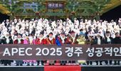 한국시사경제 경북취재본부 | 경주시는 ‘2025 APEC 정상회의’ 성공 개최를 기념해 지난달 31일 밤 신라대종공원에서 제야의 종 타종식을 열었다. 이날 행사는 밤 11시부터 자정 이후까지 이어졌으며, 시민 3,000여 명이 참여해 APEC 성공의 의미를 되새기고 새해 희망을 함께 나눴다. 행사는 사전 공연을 시작으로 시민 인터뷰, 시민 대합창, 카운트다운과 타종, 불꽃놀이 순으로 진행됐다. 특히 자정에 맞춰 진행된 타종식에는 주낙영 경주시장과 지역구 국회의원인 김석기 국회 외교통일위원장, 이동협 경주시의회 의장 등 주요 인사들이 참석해 시민들과 함께 종을 울렸다. 이와 함께 경주와 전북 익산이 동시에 종을 울리는 공동 타종도 이뤄져 눈길을 끌었다. 총 7조 33타의 종소리는 APEC 정상회의를 성공적으로 치러낸 두 도시의 연대와 미래 협력을 상징했다. 타종 이후에는 시민 합창단의 합창과 함께 불꽃놀이가 펼쳐지며 현장을 찾은 시민들의 큰 호응을 얻었다. 이날 합창곡으로는 ‘신라의 달밤’, ‘남행열차’, ‘우리의 사랑이 필요한 거죠’ 등 세대를 아우르는 곡들이 선보여지며 새