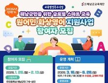 한국시사경제 권충현 기자 | 재단법인 해남군교육재단(이사장 명현관)은 상반기 원어민 화상영어 지원사업의 참여자를 모집한다. 지난 2023년부터 시작된 원어민 화상영어 지원사업은 군민 누구나 양질의 영어 교육을 받을 수 있도록 해 지역 내 교육 불균형을 해소하고, 미래 글로벌 인재 양성에 기여하기 위해 운영되고 있다. 특히 올해는 교육발전특구 예산확보를 통해 참가인원을 대폭 확대했다. 교육은 1년간 상반기(3월~6월)와 하반기(9월~12월)로 나누어 진행되며, 각 250명씩 총 500명의 해남군민이 참여할 수 있다. 반기별 교육 인원은 7세~19세 청소년 180명과 성인 70명으로 구성된다. 참여자들은 주 2회, 각 30분씩 15주 동안 화상영어 수업이 가능한 곳에서 편리하게 교육을 받을 수 있다. 상반기 참여자 모집은 1월 26일부터 2월 13일까지 이다. 7세부터 성인까지 해남군민 누구나 참여할 수 있다. 이메일 또는 해남군교육재단 방문을 통해 신청할 수 있으며, 자세한 사항은 해남군청 누리집, 해남소통넷, 해남군교육재단 누리집 및 SNS 채널 등에서 확인할 수 있다. 모