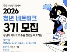 한국시사경제 사회팀 | 수원시청소년청년재단 수원시청년지원센터는 2월 21일부터 3월 6일까지 2026년 청년 네트워크 단원 32명을 모집한다. ‘청년 네트워크’는 다양한 분야의 청년지원사업에 대해 청년이 직접 아이디어를 제안, 프로젝트를 기획하여 실행하는 청년 자치기구로, 청년 간 교류와 협력을 통해 자율적 활동 기반을 확장하는 것을 목표로 한다. 모집 대상은 19~39세 청년으로 ▲수원에 거주하는 청년 ▲수원 소재 대학 재학생(휴학생 포함) ▲수원 소재 기업 재직자 및 창업 청년 ▲수원을 기반으로 청년 단체 및 자치기구 등에서 1년 이상 활동 중인 청년이라면 지원 가능하다. 특히, 수원 소재 기업 및 청년단체 등 다양한 영역에서 활동 중인 대표 청년들의 참여를 기대하고 있다. 주요활동으로는 ▲청년 주도 기획활동 운영(청년의 날 기념행사 등) ▲청년공간청년지원사업 모니터링 및 활성화 방안 제안 ▲타 지역 청년 자치기구 연계 워크숍 등이 예정되어 있다. 선정된 단원에게는 ▲위촉장 및 활동 증명서 발급 ▲우수 활동자 표창 ▲센터 프로그램 우선 참여 기회 제공 ▲봉사활동 시간 부여 등의 혜택이 제공되며