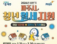 한국시사경제 경기북부취재본부 | 파주시는 주거비 부담으로 어려움을 겪고 있는 19~39세 청년 가구를 대상으로 월 최대 10만 원씩 최대 12개월간, 총 120만 원의 월세를 지원한다. 시는 2026년 상반기 참여자 60명을 모집하며, 신청 기간은 1월 21일부터 2월 20일까지다. 신청은 경기도 일자리지원사업 통합접수시스템을 통해 온라인으로 진행된다. 신청 자격은 신청일 기준 파주시 내 주택에 본인 명의로 임대차계약이 체결되어 있고, 파주시에 주민등록을 둔 19~39세(1986년~2007년 출생자) 무주택 청년 가구이다. 임차보증금 1억 원 이하, 월세 50만 원 이하 주택에 거주해야 하며, 소득 기준은 가구 건강보험료 기준 중위소득 120%(1인 직장가입자 110,969원, 지역가입자 32,889원) 이하인 경우 신청할 수 있다. 다만, 주택 소유자, 공공임대주택 거주자, 일반재산 총액이 1억 5천만 원을 초과하는 자, 2,500만 원 이상 차량을 소유한 자는 신청 대상에서 제외된다. 최종 선정 결과는 소득 및 재산 기준과 자격 요건 충족 여부에 대한 심사를 거쳐 4월 중 발표하고,