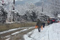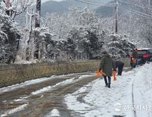 한국시사경제 충북취재본부 | 충주시는 10일 대설·강풍·한파 특보가 동시에 발효됨에 따라 강풍 피해 예방, 도로 제설과 제빙 등 종합적인 대응에 총력을 기울였다. 시에 따르면 10일 오전 9시 강풍주의보가 발효됐으며, 충주 전역에 강한 바람이 불면서 현수막과 간판 훼손, 날림 등 강풍 관련하여 각 실·과·소와 읍·면·동에 피해 예방을 위한 시설물 점검과 신속한 안전조치를 실시했다. 시는 이날 오후 부터 대설주의보에 따라 충주시 재난안전대책본부를 운영하여, 주요 간선도로, 이면도로, 급경사지 및 취약구간을 중심으로 제설작업을 진행하며 신속한 대응에 나섰다. 도로 제설작업은 10일 오전 2시 30분부터 기동반을 포함한 도로과 인력 18명과 제설차량 36대, 굴삭기 2대를 금릉동·서충주 야적장에 집결시켜 제설작업을 시작했으며, 11일 새벽까지 제설작업이 이어졌다. 각 읍·면·동에서도 공무원 및 지역자율방재단이 협력하여 골목길과 이면도로 등 제설 취약지역에 제설장비를 투입하고 제설제를 집중적으로 살포해 시민 안전 확보에 주력했다. 적설량은 10일 오후 9시 기준 평균 적설량은 3.1cm로, 칠