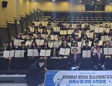 한국시사경제 경기북부취재본부 | 포천시청소년재단은 지난 2월 23일 ‘2026년 포천시청소년재단 청소년자치기구 위촉식 및 연합활동’을 개최했다. 이번 위촉식에서는 포천시 관내 초중고등학생 및 대학생으로 구성된 7개 청소년자치기구 단원 72명에게 위촉장을 수여했다. 위촉 대상은 참여(차세대)위원회를 비롯해 포천시청소년교육문화센터 청소년운영위원회 ‘비상구’, 청소년크리에이터단 ‘포크’, 청소년안전자원봉사단 ‘세이(SAY)클럽’, 포천청소년문화의집 청소년운영위원회 ‘포커스’, 청소년요리봉사단 ‘쿡볼’, 청소년축제기획단 ‘링크(LINK)’ 소속 청소년들이다. 이들은 앞으로 1년간 지역 청소년을 대표해 다양한 자치활동을 펼치게 된다. 위촉식 이후 진행된 연합활동에서는 청소년 간 소속감과 협동심을 높이고 주체적인 운영 역량을 강화하기 위한 리더십·협동 프로그램과 체험활동이 진행됐다. 참가 청소년들은 상호 소통과 공동 과제를 수행하며 결속력을 다지고, 자치기구 활동에 대한 책임감과 참여 의지를 강화하는 시간을 가졌다. 김현철 대표이사는 “우리 시 청소년이 지역사회의 당당한 주체로 성장할 수 있도록 적극 지원하겠다”며 “청소