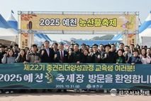 한국시사경제 권충언 기자 | 예천군은 31일, 경상북도 인재개발원 제22기 중견리더양성과정 교육생 113명이 한천체육공원을 찾아 ‘2025 예천활축제·농산물축제’를 둘러보고 주요 프로그램을 체험했다고 밝혔다. 이번 방문은 연수 과정 중 지역 문화와 현장을 이해하기 위한 일정으로, 교육생들은 다양한 체험을 즐기며 예천의 가을 축제 분위기를 느꼈다. 현장에서 교육생들은 양궁 체험에 참여해 활을 직접 쏴보며 전통 활문화의 매력을 경험했고, 쪽파 요리 체험, 사과 시식 이벤트 등을 체험하며 지역 먹거리의 풍미를 즐기며 축제 부스들을 자유롭게 구경했다. 김학동 군수는 “인재개발원의 신도시 이전 후 처음 진행된 이번 방문은 지역 행사와의 교류를 확대해 나가는 뜻깊은 계기가 됐다”며, “앞으로도 교육생들이 예천 곳곳의 문화·관광 현장을 체험할 수 있도록 교류 프로그램을 강화해 나가겠다”고 밝혔다. 또한, 예천군은 이번 방문을 계기로 인재개발원과의 상호 연계 프로그램을 지속 확대하여 지역 이해도를 높이고, 군 정책 및 관광 자원을 널리 알리는 기회를 마련할 계획이다. 한편, 경상북도 인재개발원은 지난