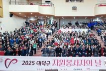 한국시사경제 문화팀 | 대전 대덕구는 (사)대덕구자원봉사센터(이사장 박재용)가 28일 대덕구 청소년어울림센터에서 지역사회 발전에 기여한 자원봉사자들을 격려하기 위한 ‘2025 대덕구 자원봉사자의 날 기념식’을 개최했다고 밝혔다. 이번 기념식은 △식전공연 △개회선언 및 내빈 소개 △우수 자원봉사자 표창 수여 △자원봉사자 사진공모전 시상식 △2025 자원봉사활동 영상 시청 △축하공연 △경품추첨 순으로 진행됐다. 이날 행사에는 300명이 넘는 자원봉사자가 참석해 서로의 활동을 격려하고, 우수 자원봉사자 표창을 통해 자긍심을 나누며, 축하공연을 즐기며 힐링하는 시간을 가졌다. 또한 지역 내빈과 대덕구자원봉사센터 이사회, 자문위원회, 여성자문위원회 등이 함께 자리해 자원봉사자들의 헌신에 아낌없는 박수를 보냈다. 박재용 (사)대덕구자원봉사센터 이사장은 “지역 곳곳에서 묵묵히 나눔과 실천으로 따뜻함을 전해주신 모든 자원봉사자분께 깊이 감사드린다”며 “앞으로도 자원봉사의 가치를 확대하고, 더 많은 주민이 참여할 수 있도록 센터가 든든한 플랫폼 역할을 하겠다”고 말했다. 최충규 대덕구청장은 “대덕구의