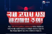한국시사경제 문화팀 | ■ 국세 고지서 사칭 해킹메일 주의! 최근 '국세 고지서.pdf(tax_notice).zip'이라는 파일명으로 국세고지서를 사칭한 악성코드가 이메일로 유포되고 있습니다. 해당 파일을 열람하지 말고 즉시 삭제하시기 바랍니다. ■ 메일 수신 시 확인해야 할 체크리스트 ① 국세청에서 보낸 메일과 문자는 홈택스에서 확인! ② 의심스러운 제목 열람 전에 삭제, 스팸메일 신고 ③ 모르는 발신자 주소 링크, 첨부파일 클릭 금지 ④ 계정정보 요구에 아이디, 패스워드 입력 금지 국세청 발신메일 진위여부는 홈택스에서 직접 확인 가능합니다!