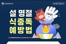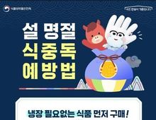 한국시사경제 문화팀 | 설 명절 식중독 예방법 ■ 냉장 필요없는 식품 먼저 구매! - 안전한 장보기 순서 상온 보관 제품 → 농산물 → 냉장 가공 식품 → 육류 → 어패류 *온라인 구매 시 배송 상태 확인하고 상온에 오래 방치되지 않도록 주의 ■ 음식 조리 요령 - 조리 전 깨끗이 손 씻기 비누로 30초 이상 흐르는 물에 손 씻기 - 가열조리 시 완전히 익히기 (육류) 완전히 익히기(중심온도 75°C 1분 이상) (어패류) 완전히 익히기(중심온도 85°C 1분 이상) - 재냉동 금지 해동 후 재냉동 금지 ■ 음식 보관 요령 - 조리된 음식은 냉장보관 · 조리 후 즉시 섭취하거나, 빠르게 식혀 냉장 보관 · 장거리 이동 시 보냉백, 아이스박스에 보관 후 운반 · 보관한 음식은 반드시 재가열 후 섭취 "식중독 예방하고 건강하고 안전한 설날 보내세요!"