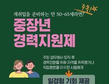 한국시사경제 문화팀 | ■ 재취업을 준비하는 만 50~65세라면? 중장년 경력지원제 주된 업무에서 퇴직 후 경력전환을 위해 자격을 취득했거나 직업훈련을 이수한 사람에게 → 일경험 기회 제공 · 1~3개월 간 실무 수행 · 직무 교육 · 멘토링 - 참여수당 월 최대 150만 원 지원