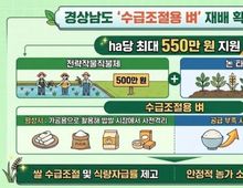 한국시사경제 문화팀 | 경남도는 쌀 수급 안정과 농가 소득 보전을 위해 올해부터 ‘논 타작물 재배지원 사업’에 ‘수급조절용 벼’를 신규 품목으로 추가하고, 전략작물직불제와 연계해 헥타르(ha)당 최대 550만 원을 지원한다고 밝혔다. 최근 쌀값 상승으로 벼 재배 면적 증가가 예상되자, 도는 시장 상황에 유연하게 대응할 수 있는 ‘수급조절용 벼’ 재배 확대를 통해 쌀 과잉 생산을 예방하고 농가의 안정적인 소득 기반을 마련할 계획이다. ‘수급조절용 벼’를 재배하는 농업인은 전략작물직불금 500만 원에 논 타작물 재배지원금 50만 원을 더해 ha당 총 550만 원을 지원받을 수 있다. 이는 일반 벼 재배 대비 안정적인 소득을 확보하면서 쌀 공급 과잉을 사전에 조절하기 위한 정책이다. ‘수급조절용 벼’는 평상시에는 가공용으로 활용해 밥쌀 시장에서 사전에 격리하고, 쌀 공급이 부족할 경우에는 밥쌀용으로 전환할 수 있는 품목으로 시장 상황에 따라 탄력적으로 대응할 수 있는 것이 특징이다. 한편 전략작물직불제는 식량자급률을 높이고 벼 재배면적을 적정 수준으로 관리하기 위해 전략작물을 재배하는 농업인과 농업법인에