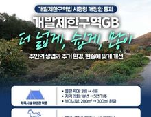 한국시사경제 문화팀 | 개발제한구역법 시행령 개정안 통과 ■ 개발제한구역GB 더 넓게, 쉽게, 많이 - 주민의 생업과 주거 환경, 현실에 맞게 개선 ■ 체육시설·야영장 확충 · 물량 확대: 3배 → 4배 · 자격 완화: 10년 → 5년 거주 · 부대시설: 200㎡ → 300㎡ 완화 ■ 승마장 시설 면적 확대 · 부대시설: 2000㎡ → 3000㎡ ■ 근린생활시설 이축 대상 확대 · 11개 시설만 가능 → 11개 시설 외 적법하게 용도 변경한 시설도 가능(공익사업 편입 시) ■ 태양에너지 설비 설치 규제 완화 · 50㎡ 초과 시 설치 어려움 → 허가 후 설치 가능(자가소비용)
