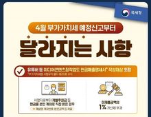 한국시사경제 문화팀 | 4월 부가가치세 예정신고부터 달라지는 사항 ■ 유튜버 등 미디어콘텐츠창작업도 현금매출명세서* 작성대상 포함 *부가가치세법 시행규칙 별지 제26호 서식 - 시청자로부터 개별후원금 등 현금을 본인 계좌로 직접 받은 경우 → 채널명·계좌번호·받은금액 등 제출 - 미제출 금액의 1% 가산세 부과 ■ 실제 거래 없이 세금계산서를 주고받은 경우 가산세 상향 3% → 4% 국세청은 미디어콘텐츠 분야의 세원 투명성을 높여 공정하고 건강한 콘텐츠 환경을 만들겠습니다.