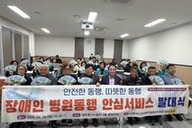 한국시사경제 문화팀 | 제주시는 4월 9일 오전 10시 제주혼디누림터에서 ‘장애인 병원동행서비스’ 발대식을 개최했다. 발대식은 신장장애인제주특별자치도협회 제주시지부(지부장 김성언) 관계자와 동행매니저 15명 등 30여 명이 참석한 가운데 진행됐다. 장애인 병원동행서비스는 동행매니저가 장애인의 병원 이동부터 접수·진료·수납, 약국 이용, 귀가까지 전 과정을 지원하는 사업이다. 병원 이용에 어려움을 겪는 장애인 가구라면 누구나 이용할 수 있으며, 이용을 원하는 경우 2일 전까지 전화* 예약을 통해 신청하면 된다. 전화 예약은 4월 22일부터 가능하며, 본격적인 병원동행서비스는 5월 4일부터 12월 30일까지 운영될 예정이다. 서비스는 1회 최대 4시간 이내 무료로 제공되며, 제주시 관내 모든 병원을 이용할 수 있다. 한편, 동행매니저는 관련 자격증을 취득한 15명이 선발되어 전문 교육을 마쳤으며, 수행기관인 신장장애인협회 제주시지부에는 인건비, 활동비, 운영비 등 총 5천만 원이 지원된다. 김범석 장애인복지과장은 “병원 이용에 어려움을 겪는 장애인들을 위한 동행서비스를 통해 돌