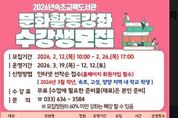 한국시사경제 문화팀 | 속초교육도서관은 관내 학생 및 학부모·지역주민들의 지속 가능한 배움을 통한 자기성장을 위해 ‘2026년 문화활동강좌’ 수강생을 모집한다. 이번 강좌는 3월 19일부터 12월 12일까지 운영되며, 초등학생 대상 △어린이 글로 표현하는 세상 등 7개 강좌, 중·고등학생 대상 △핵심을 잡아주는 고등논술 등 2개 강좌, 학부모·지역주민 대상 △포토샵 자격증반 등 5개 강좌로 총 14개 프로그램이 운영된다. 수강 신청은 2월 12일부터 2월 26일까지 속초교육도서관 누리집을 통해 신청 가능하며, 스마트폰 활용교육 강좌는 방문을 통해 선착순으로 신청할 수 있다. 김주희 관장은 “지역주민 누구나 학습을 통해 배우고 성장할 수 있도록 평생교육의 기회를 지속적으로 확대·지원할 것이다.”라고 전했다. 자세한 내용은 속초교육도서관 누리집 공지사항을 참고 하거나 담당자에게 문의하면 된다.
