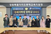 한국시사경제 문화팀 | 강원특별자치도교육청은 12월 22일 춘천 스카이컨벤션에서 ‘2025년 직업계고 교육과정 및 고교학점제 업무 담당자 공동 연수’를 운영했다고 밝혔다. 이번 연수는 도내 직업계고 교감, 교무·교육과정 담당 교원, 2025년 직업계고 교육과정 및 학점제 지원단, 행사 관계자 등 100여 명이 참석해 직업계고 교육과정 및 고교학점제의 핵심 방향을 공유하고, 학교 현장의 적용·운영 방안을 함께 모색했다. 또한 담당자의 실무 전문성을 강화하고, 학교 간 우수사례와 애로사항을 공유하는 협력 네트워크를 구축해 직업계고 교육과정·고교학점제의 안정적 정착을 위한 기반 조성 방안을 논의했다. 교육과정 편성 및 고교학점제의 현장 적용성과 실무 연계를 강화하기 위해 기획된 이번 연수에서는 △한국직업능력연구원 이수현 부연구위원 특강(학생 주체성 관점의 교육과정 편성) △2028학년도 대입전형 기본사항 및 교육과정 편성·운영 주요 사항, 고교학점제 최소 성취수준 보장지도 운영 방안 △STEP 학습관리시스템(LMS) 활용 직무 역량 강화 지원 방법과 방향 등을 중심으로 현장 적용의 핵심 과제를 점검하고 실행 중심의 운영 방안을
