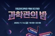 한국시사경제 디지털 뉴스팀 | 과학기술정보통신부 국립과천과학관은 개관 17주년을 맞아 11월 14일 18:00부터 22:00까지 상설전시관을 무료로 개방하는 ‘과밤(科밤)’ 특별 야간 개관 행사를 개최한다. 특히, 이번 행사는 국립과천과학관 개관 이후 처음 진행되는 상설전시관 야간 개방이며, 퇴근 후에도 부담 없이 즐길 수 있는 야간 종합 과학문화 프로그램으로 전시 해설, 체험, 과학공연, 천문관측, 먹거리 차(푸드트럭) 등 온 가족이 함께하는 콘텐츠로 구성했다. 야간 시간 동안 관람객은 전시관 자율관람과 더불어 전문해설사가 진행하는 전시 해설을 들을 수 있으며, 중앙홀 2층에는 만들기 체험 5종과 전시 연계 체험구역(체험존)이 꾸려져 연령대별로 과학 원리를 직접 체험할 수 있다. 중앙홀 1층에서는 과학 마술쇼와 가족 퀴즈 타임이 진행되고, 천체투영관 영상 상영과 천문대의 야간 관측 프로그램도 운영된다. 야외전시장에는 먹거리 차(푸드트럭) ‘야이구역(야미존)’이 마련되어 간단한 간식과 음료를 즐길 수 있다. 국립과천과학관은 행사 시간 중 무료입장 및 주차를 제공하고, 관람 동선을 고려한 안전·질서 유도 인력을