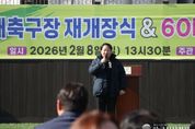 한국시사경제 경기북부취재본부 | 남양주시는 지난 8일 진접읍 부평리 소재 크낙새축구장에서 재개장식을 개최하고, 지역 생활체육 활성화의 새로운 출발을 알렸다고 9일 밝혔다. 이번 재개장식은 노후화된 축구장 시설을 정비해 시민에게 보다 안전하고 쾌적한 체육 환경을 제공하고, 지역 생활체육 저변 확대를 도모하기 위해 마련됐다. 이날 행사에는 주광덕 남양주시장을 비롯해 도·시의원, 진접읍 유관단체장, 진접축구협회 관계자와 지역 주민, 축구 동호인 등 200여 명이 참석했다. 재개장식은 개회 선언을 시작으로 내빈 소개, 국민의례, 경과보고, 환영사 및 축사, 기념촬영 순으로 진행됐다. 이어 60대 상비군 시무식을 함께 열어 지역 생활체육 발전을 다짐하는 시간을 가졌다. 크낙새축구장은 이번 정비사업을 통해 인조잔디 교체와 관람석 정비, 조명시설 개선 등 전반적인 시설 개선을 완료했다. 시는 이를 통해 이용 안전성을 높이고 시민 누구나 편리하게 이용할 수 있는 체육시설로 재정비했다. 주광덕 시장은 축사를 통해 “새롭게 단장한 크낙새축구장이 지역 주민 모두의 건강과 화합을 키워가는 공간으로 거듭나게