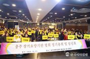 한국시사경제 문화팀 | 충주장기요양기관협회(회장 박영미)는 11일 오후 6시 충주컨벤션센터에서 2025년 정기총회를 개최하며 한해의 활동을 뜻깊게 마무리했다. 이날 총회에는 장기요양기관 종사자 및 내빈 등 150여 명이 참석해 금년도 사업을 평가하고 내년도 사업계획 수립 등 향후 활동을 논의했다. 또한, 장기요양기관 종사자의 노고를 격려하고 사기를 진작하기 위한 장기요양서비스 발전 유공자 표창 및 만찬의 시간으로 화합을 다졌다. 식전행사로는 택견 비보잉팀 ‘트레블러 크루’의 화려하고 멋진 공연이 펼쳐져 행사를 더욱 풍성하게 했다. 박영미 회장은 “어르신 한 분 한 분을 가족처럼 돌봐주시는 종사자분들의 헌신과 노고에 깊이 감사드린다”며 “신뢰할 수 있는 장기요양서비스 제공을 위해 앞으로도 최선을 다하겠다”고 말했다. 조길형 시장은 “최일선에서 어르신들의 노후를 위해 최선을 다해주셔서 감사드린다”며 “시에서도 더 나은 환경을 위해 적극 노력하겠다”고 말했다. 충주장기요양기관협회는 2024년 1월에 발대식을 가지고 출범한 이후, 현재 31개 기관이 가입해 장기요양기관의 질적 성장