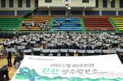 한국시사경제 김숙영 기자 | 진안군이 26일 오후 진안문예체육회관에서 군민 500여 명과 주요 내빈이 참석한 가운데 ‘진안양수발전소 유치 성공기원 범군민 결의대회’를 성황리에 마무리하고, 유치 성공에 대한 강력한 의지를 대내외에 선포했다. 이날 결의대회에는 전춘성 진안군수를 비롯해 김관영 전북특별자치도지사, 안호영 국회의원, 동창옥 진안군의회 의장, 그리고 한국동서발전 권명호 사장 등이 참석하여 진안의 도약에 힘을 실었다. 먼저 성공기원공연으로 준비된 붓글씨 공연(캘리그라피)에서는 ‘새로운 시작, 100년 미래 진안양수발전소’라는 문구를 역동적인 붓놀림으로 그리며 진안의 강력한 의지를 예술적으로 승화시켜 참석자들의 큰 박수를 받았다. 이어 진행된 구동수 위원장과 신갑수 위원장의 결의문 낭독 직후 두 위원장의 선창에 맞춰 500여 군민이 하나 된 목소리로 일제히 손 피켓 펼치기 퍼포먼스가 진행돼 군민의 하나 된 힘으로 양수발전소를 진안에 유치하겠다는 결의를 다졌다. 특히, 마지막 유치 성공 다짐 퍼포먼스는 참석자들의 마음을 하나로 모았다. 군민과 주요 내빈들이 행사 시작 전 대형애드벌룬에