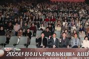 한국시사경제 문화팀 | 청주시는 23일 롯데시네마 용암점에서 ‘2025 청주시 노인맞춤돌봄서비스 종사자 한마음대회’를 성황리에 개최했다. 이번 행사는 청주 지역 노인맞춤돌봄서비스의 질적 향상을 도모하고, 현장에서 헌신해 온 종사자들의 노고를 격려하기 위해 마련됐다. 행사에는 이범석 청주시장을 비롯한 시 관계자와 전담사회복지사, 생활지원사 등 관계자 약 320명이 참석했다. 행사 1부에서는 취약노인 보호에 기여한 6개 수행기관(청주시독거노인통합지원센터, 서원노인복지관, 가경노인복지관, 우암소규모노인종합센터, 사회적협동조합 휴먼케어, 목령종합사회복지관)의 노인맞춤돌봄 유공자 20명에게 시장·시의장 표창이 수여됐다. 이를 통해 현장에서 묵묵히 역할을 수행해 온 종사자들의 헌신에 감사의 뜻을 전했다. 2부에서는 종사자들을 위한 영화 관람 시간이 마련돼, 업무로 인한 스트레스를 해소하고 재충전할 수 있는 기회를 제공했다. 참석자들의 큰 호응 속에 행사의 의미를 더했다. 이범석 청주시장은 “앞으로도 어르신들이 익숙한 거주 지역에서 안정적으로 다양한 통합 돌봄 서비스를 누릴 수 있도록